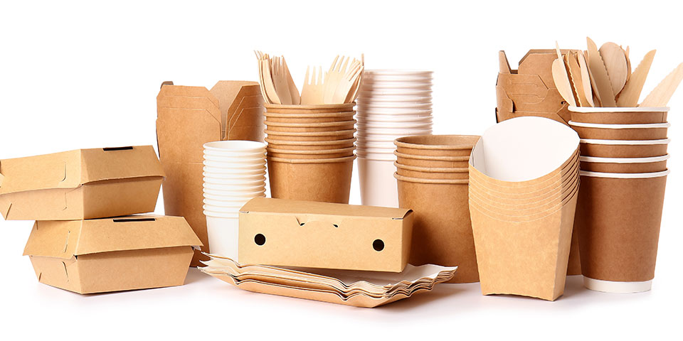 紙コップ、紙皿、割り箸、使い捨てカトラリー。